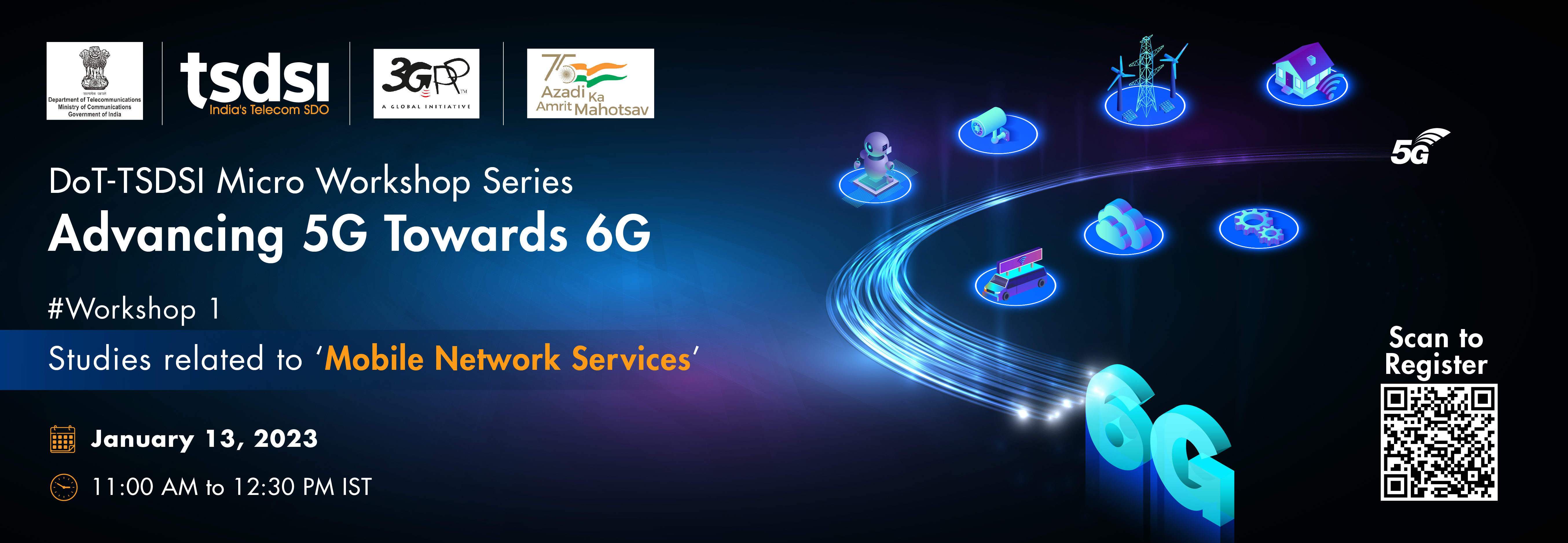 DoT-TSDSI Micro Workshop Series on ‘Advancing 5G towards 6G’ #Workshop 1: Studies related to ‘Mobile Network Services’ (January 13, 2023 Online)
